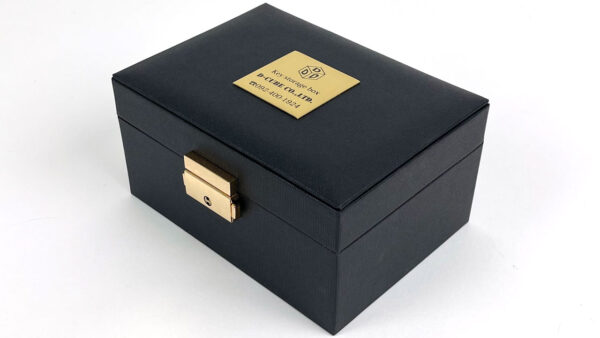 高級としか言いようのないケースを更に引き立てる真鍮プレートを天面にセット。