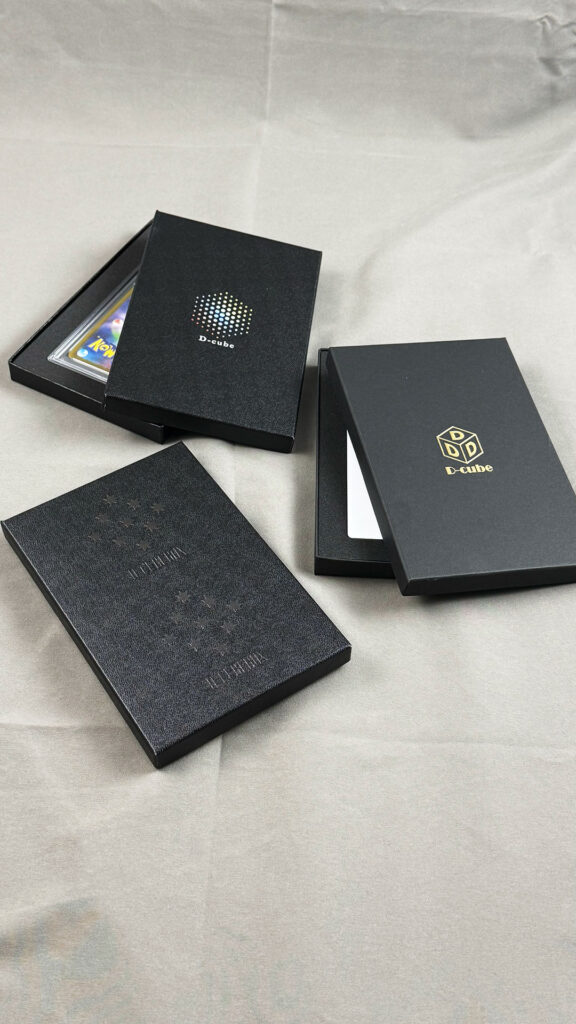こちらが最近絶好調のPSA特殊ケース対応トレカ収納ボックスでございます。今回は無地ではなくさんおうる印刷したものをご紹介です。