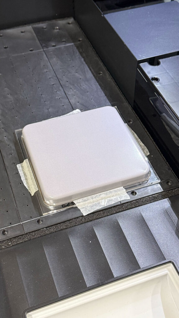 フタを治具にセット!そして高さを計測していざ印刷開始です!