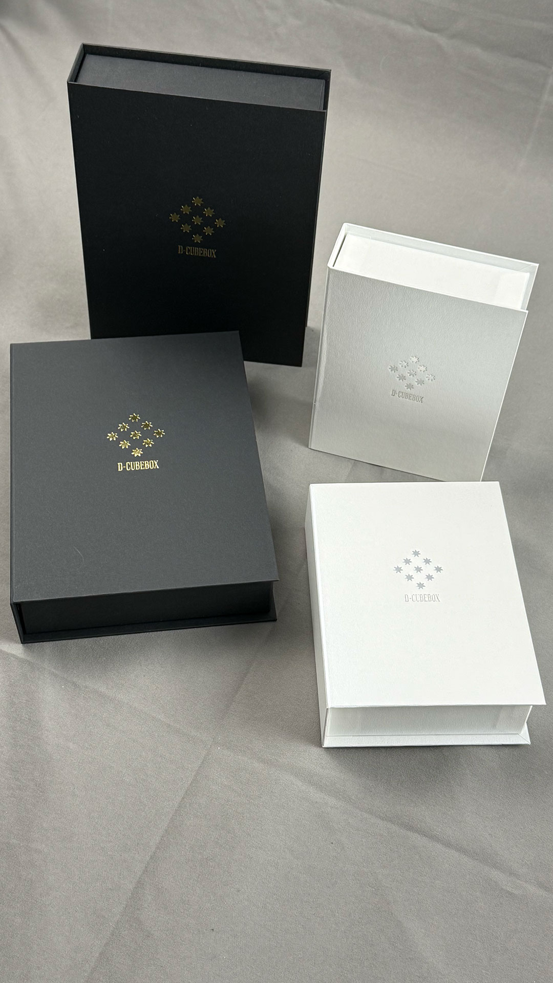 みんな大好きブック式の貼り箱です。やはりオリジナルで作るならこの形で製作してオッっと言わせたいですよね。しかしながら形状も複雑でさらにマグネット仕込むとなると単価がうなぎのぼり!