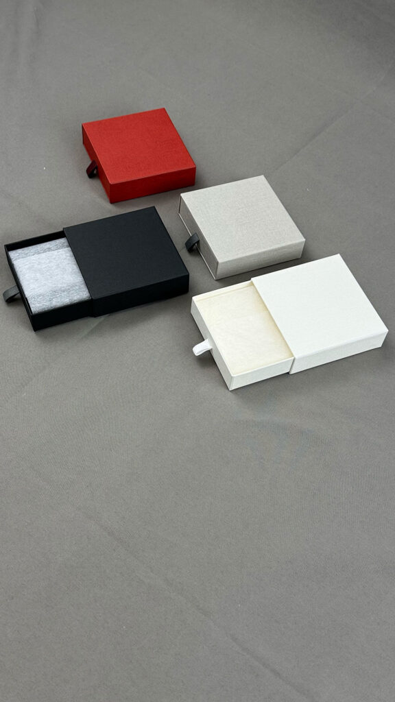 こちらもレターパック対応ジュエリーマルチボックス引き出し式。表面の紙の種類も丈夫なものになっており少し単価アップでございますがバリエーションの一つとしていかがでしょうか?