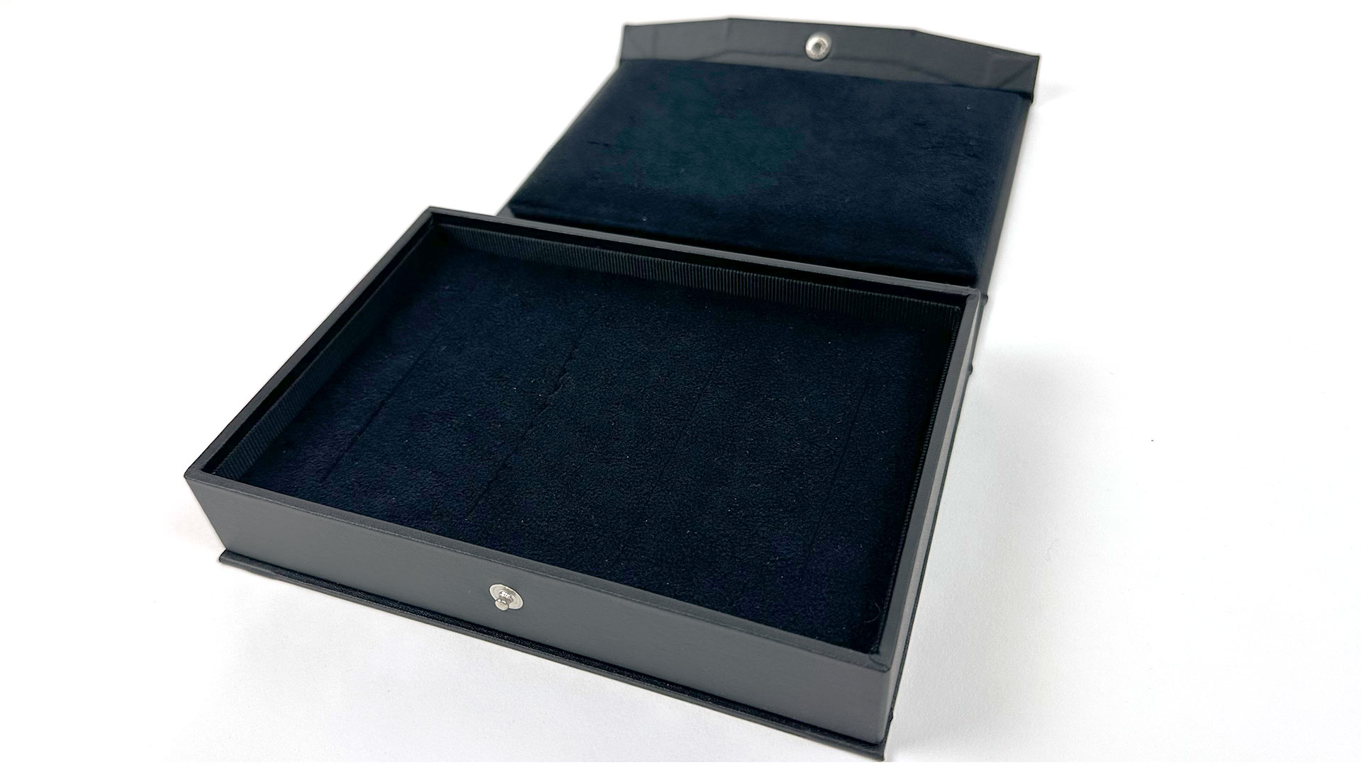 外貼りはPU(合皮)内側には布地の生地を貼って重厚感と耐久性を重視した箱です。