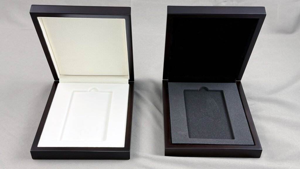 高額なトレーディングカードや希少な会員証、スマートキー・VIPメンバーカードなど── 「収納」と「魅せる」を両立させた木製ギフトケースが登場。 塗木の高級感と、中入れ緩衝材の自由なカスタム対応で、あなたの大切な品にふさわしいギフトボックスをご提案します。